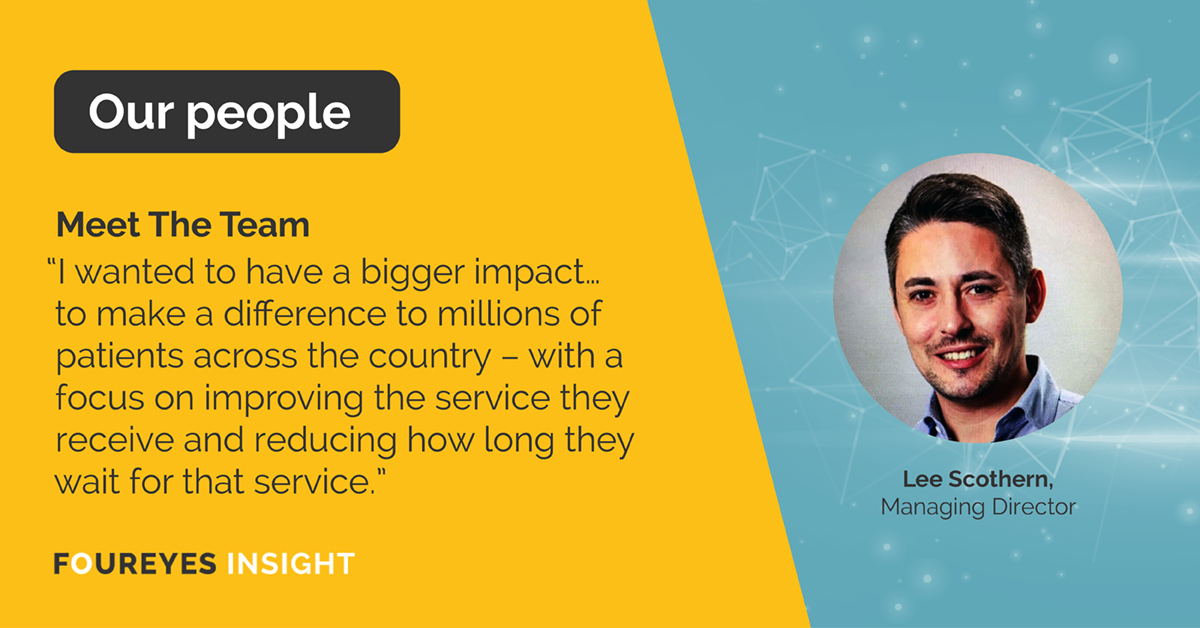 During his time as transformation lead, Lee worked with the Four Eyes Insight team on an orthopaedic project where he witnessed first-hand the impact the team made, following which, he had re-engaged with them for a wider piece of work on other surgical specialties based on the results.