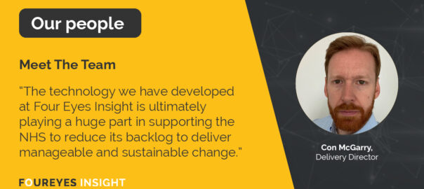 This month, we spoke to newly appointed Delivery Director, Con McGarry about his Four Eyes Insight journey, his passion for developing talent and his plans to enhance sustainable patient care pathways.